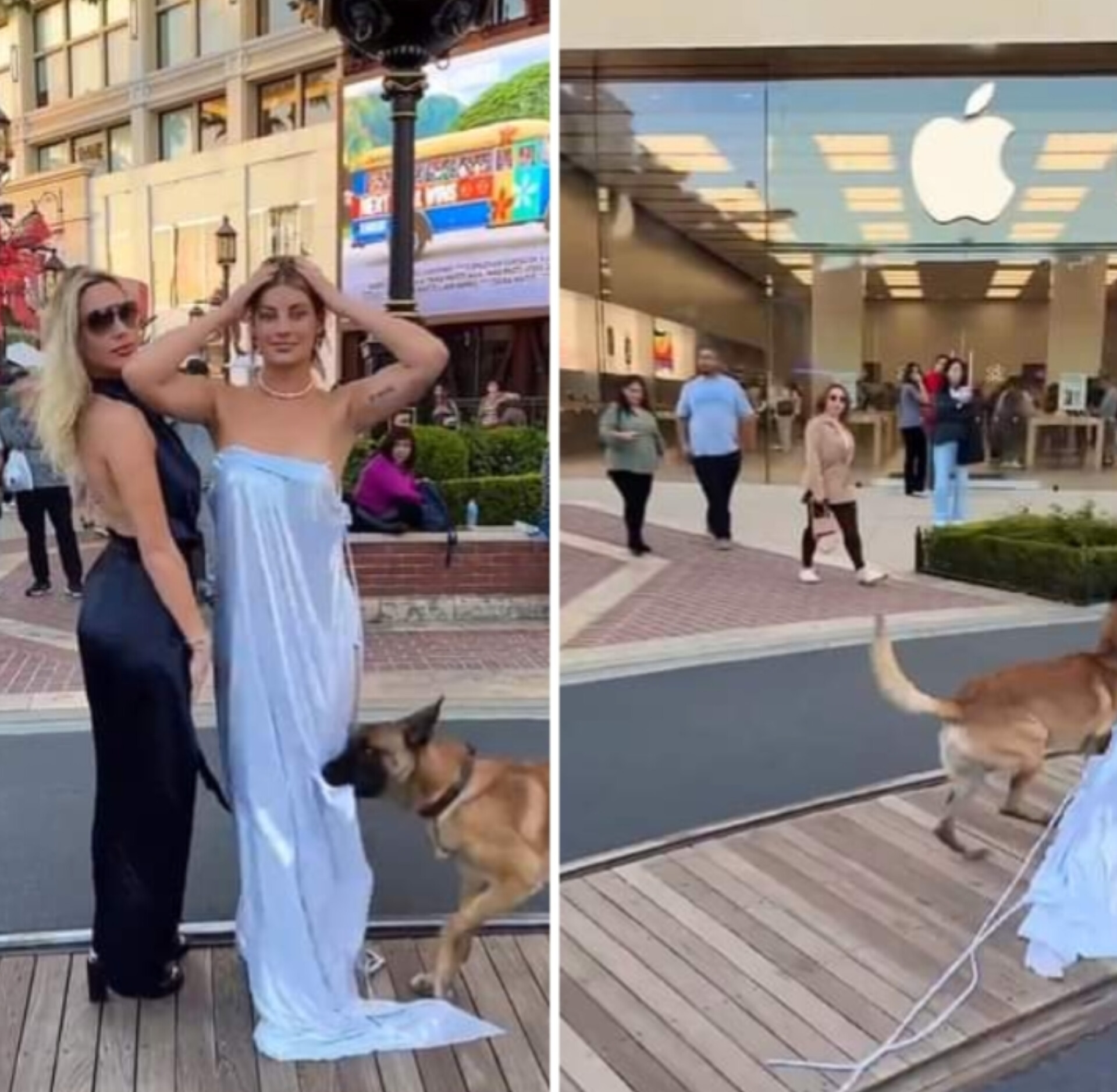 Mientras las risas resonaban en el aire, el perrito, con cola enérgica y ojos curiosos, se acercó a la mujer que lucía el vestido. De repente, con un instinto juguetón, el travieso can mordió suavemente el dobladillo del vestido y, para asombro de todos, lo arrancó por completo. El pequeño peludo delincuente salió corriendo, vestido en boca, mientras la mujer, en estado de shock, intentaba taparse con lo que quedaba de su atuendo.